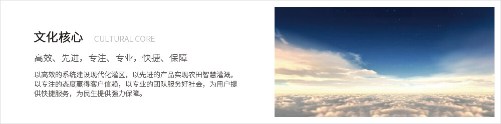 ? ? ? 公司秉誠“質量第一、客戶至上,不斷創(chuàng)新、永葆先進”的發(fā)展理念,將與用戶風雨同舟,以一流的技術,優(yōu)質的服務,成為實現(xiàn)中國灌區(qū)智能化、信息化、管理現(xiàn)代化的領跑者!